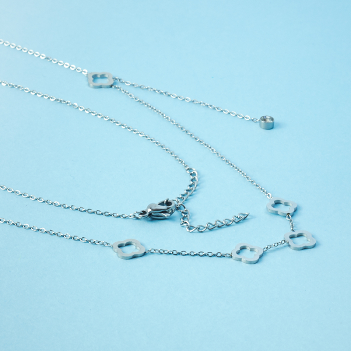 Naszyjnik z mini zawieszkami ze stali chirurgicznej koniczynka marokańska w kolorze srebrnym 40,5cm