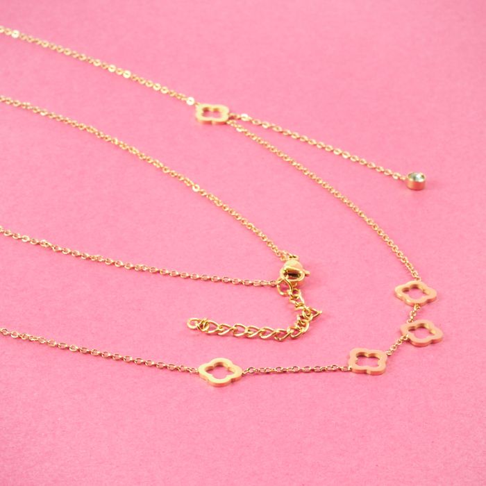Naszyjnik z mini zawieszkami ze stali chirurgicznej koniczynka marokańska w kolorze złotym 40,5cm