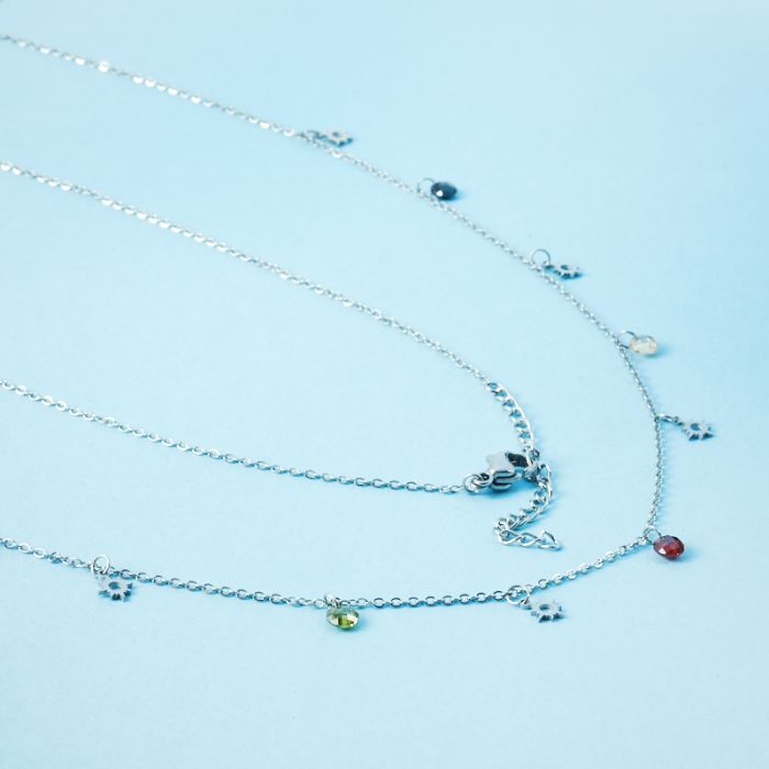 Naszyjnik z mini zawieszkami ze stali chirurgicznej róża wiatrów i cyrkonie w kolorze srebrnym 41cm