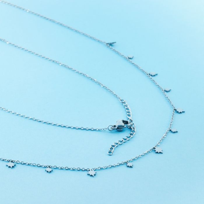 Naszyjnik z mini zawieszkami ze stali chirurgicznej róża wiatrów w kolorze srebrnym 40cm