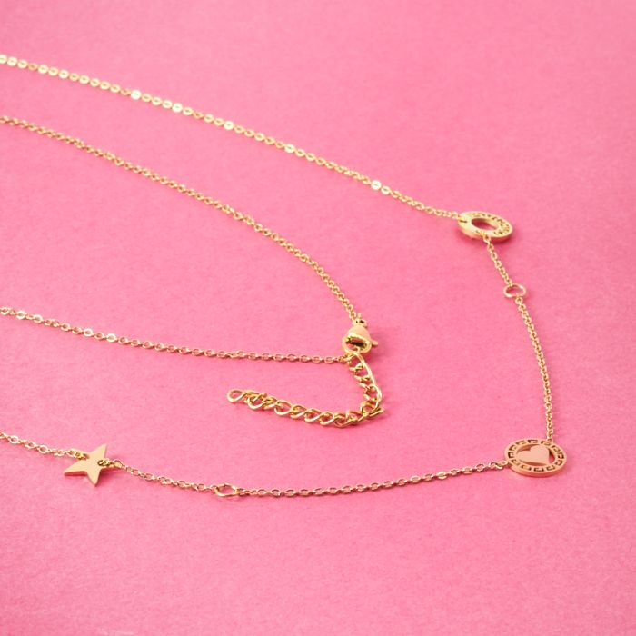 Naszyjnik z mini zawieszkami ze stali chirurgicznej serce gwiazdka kółko w kolorze złotym 42cm