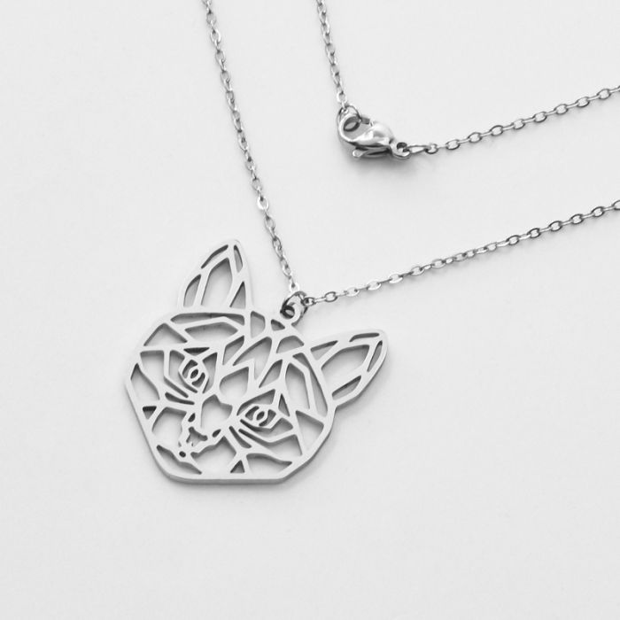 Naszyjnik ze stali chirurgicznej 45cm kotek origami w kolorze srebrnym 45cm