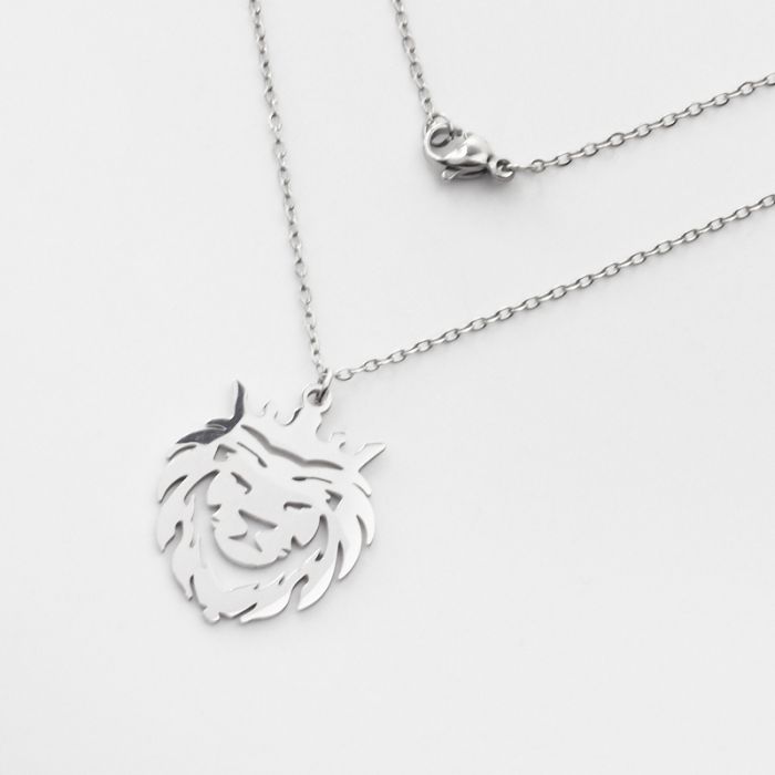 Naszyjnik ze stali chirurgicznej 45cm lew w koronie w kolorze srebrnym 45cm