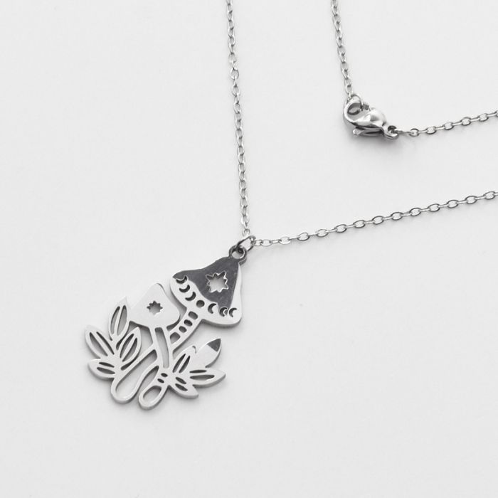Naszyjnik ze stali chirurgicznej grzybki w kolorze srebrnym 45cm
