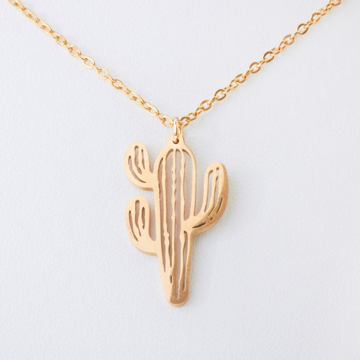 Naszyjnik ze stali chirurgicznej kaktus w kolorze złotym 45cm