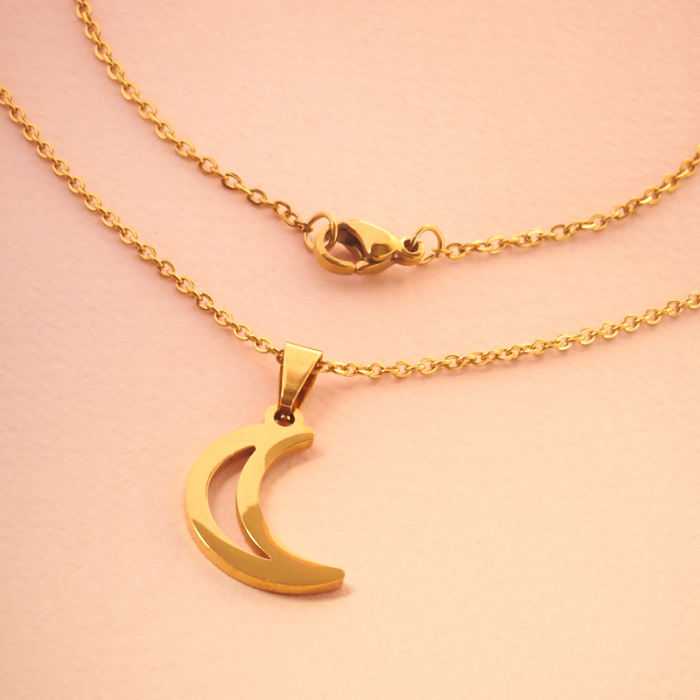 304L, która dzięki obniżonej zawartości węgla charakteryzuje się większą stabilnością materiału i dobrą odpornością na korozję.Naszyjnik ze stali szlachetnej księżyc w kolorze złotym 45cm