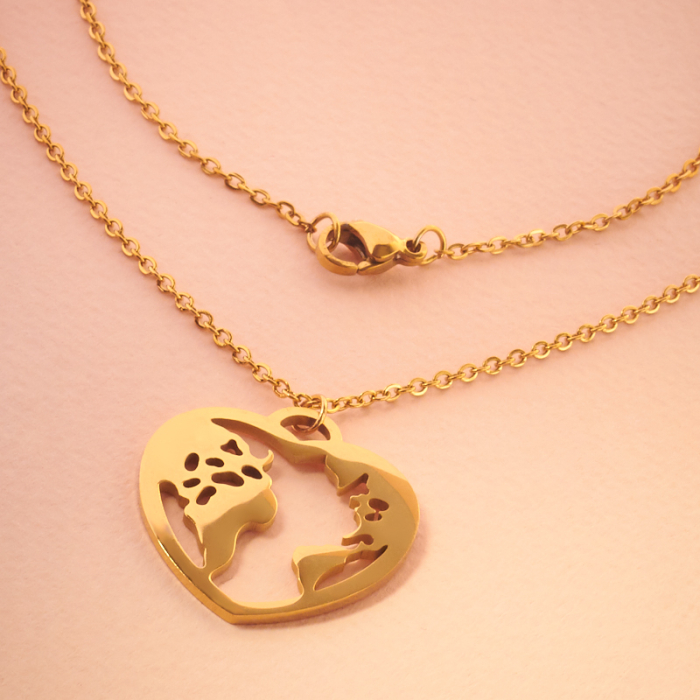 304L, która dzięki obniżonej zawartości węgla charakteryzuje się większą stabilnością materiału i dobrą odpornością na korozję.Naszyjnik ze stali szlachetnej kula ziemska w serduszku w kolorze złotym 45cm