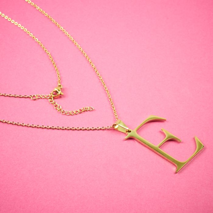 Naszyjnik ze stali chirurgicznej z literką E w kolorze złotym 44cm
