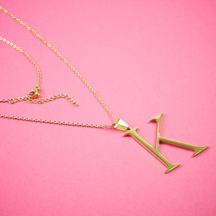 Naszyjnik ze stali chirurgicznej z literką K w kolorze złotym 44cm