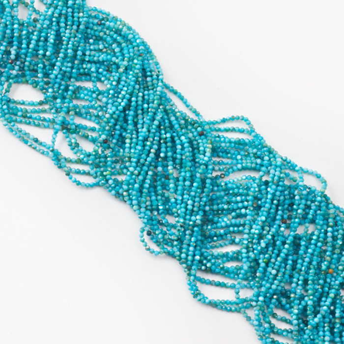 Drobne koraliki wykonane z masy perłowej w kształcie kulki fasetowanej. Dominujący kolor to niebieski, przeplatany z zielonym i mlecznym. Kamienie posiadają naturalnie powstałe wrostki i przebarwienia. Pięknie się mienią.*Ponieważ są to kamienie naturalne mogą się nieznacznie różnić od siebie rozmiarem.*Rozmiar podany w nazwie produktu jest wartością orientacyjną. Charakterystyka: