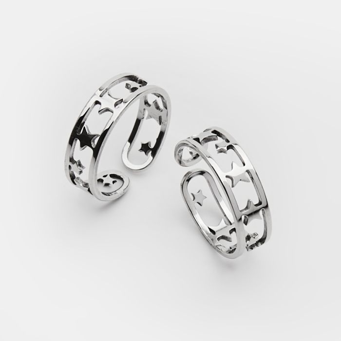Obrączka regulowana ze stali chirurgicznej z gwiazdkami w kolorze srebrnym 20mm