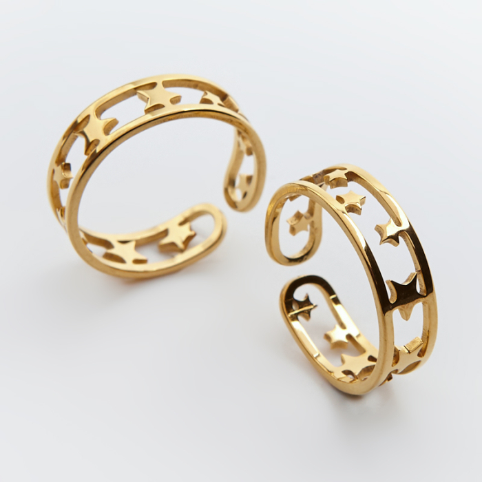 Obrączka regulowana ze stali chirurgicznej z gwiazdkami w kolorze złotym 20mm