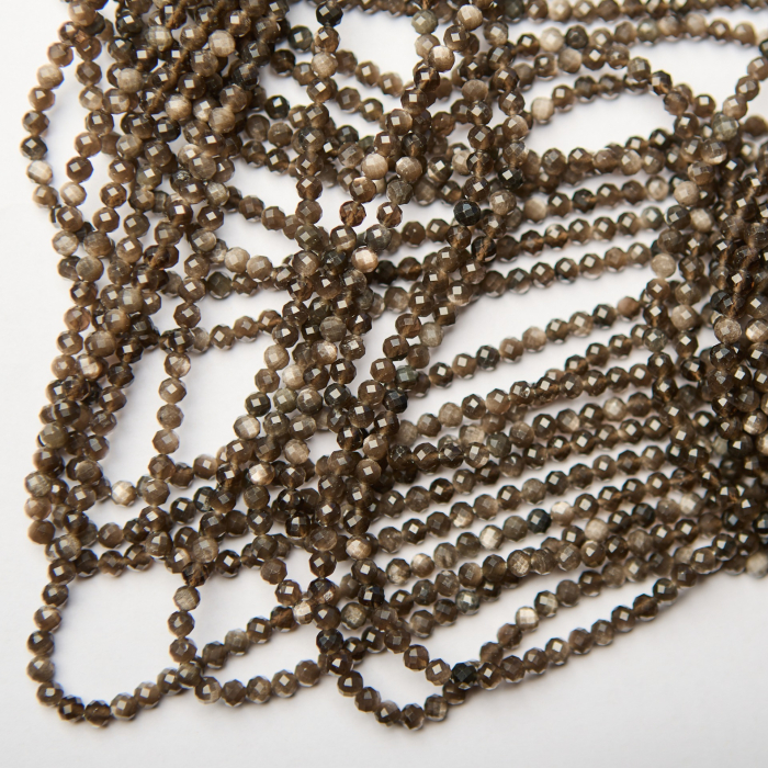 Obsydian srebrzysty kulki fasetowane 4mm