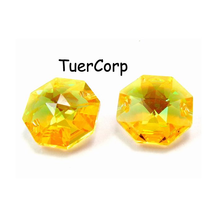 Octagon lily, light topaz blue AB 2 dziurki 14mm