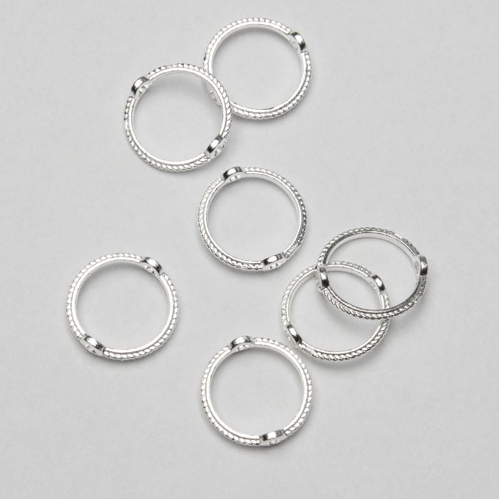 Wyrazista ramka do oprawy większych koralików, porządkująca kompozycję i podkreślająca połysk elementu. Wersja w kolorze srebrnym, wykonana ze stopu metalu. Średnica wewnętrzna 10,5 mm idealna do większych kamieni, szkła i pereł w projektach kolczyków, bransoletek i naszyjników.