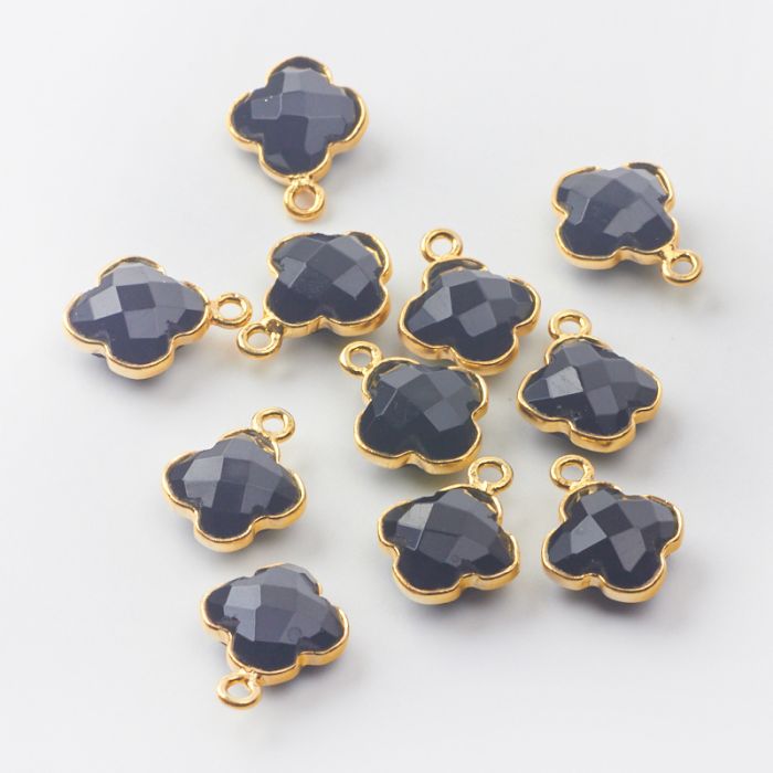 Onyks koniczyna marokańska fasetowana w okuciu AG925 pozłacana 8,5mm