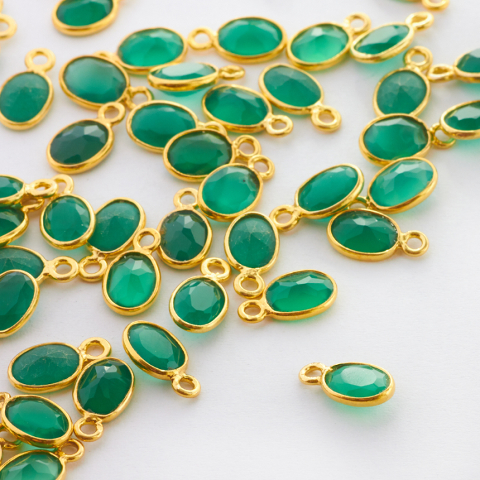 Onyks zielony owal fasetowany w okuciu zawieszka AG925 7mm