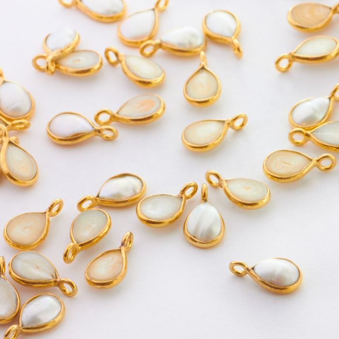 Perła naturalna łezka w okuciu AG925 pozłacana 7mm