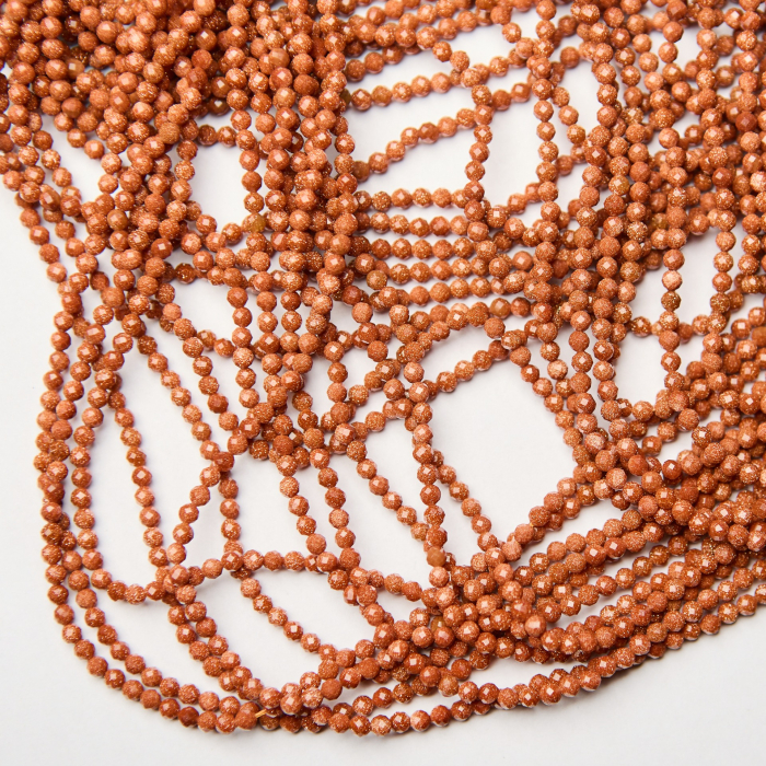 Wysokiej jakości mocno mieniące się fasetowane kuleczki piasku pustyni. Ponieważ są to kamienie naturalne, mogą się nieznacznie różnić wielkością między sobą. Charakterystyka:
