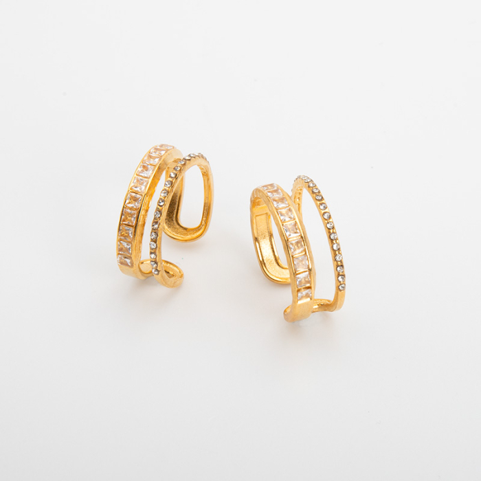 Pierścionek obrączka ze stali chirurgicznej z cyrkoniami w kolorze złotym 18mm