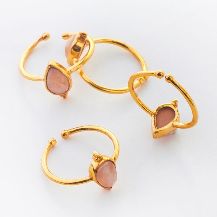 Pierścionek regulowany z kamieniem słonecznym pozłacany AG925 20mm