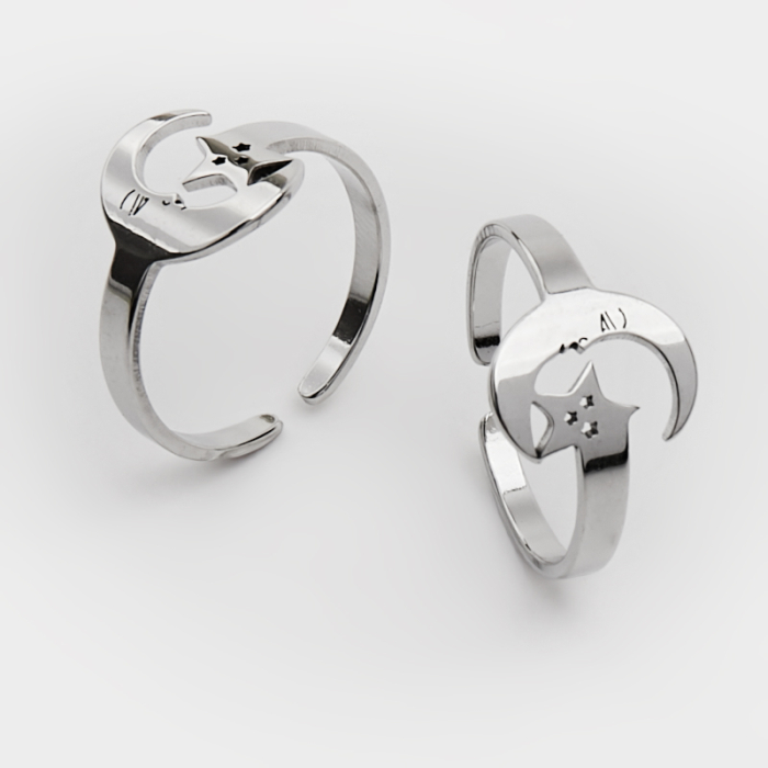 Pierścionek regulowany ze stali chirurgicznej księżyc z gwiazdką w kolorze srebrnym 20mm