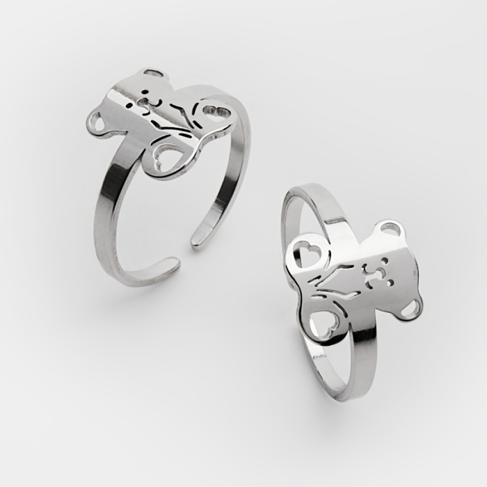 Pierścionek regulowany ze stali chirurgicznej z misiem w kolorze srebrnym 20mm