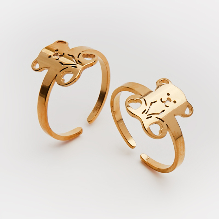 Pierścionek regulowany ze stali chirurgicznej z misiem w kolorze złotym 20mm