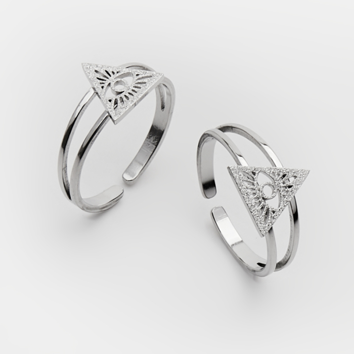 Pierścionek regulowany ze stali chirurgicznej z okiem proroka w kolorze srebrnym 20mm