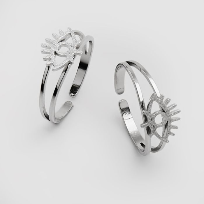 Pierścionek regulowany ze stali chirurgicznej z okiem proroka w kolorze srebrnym 20mm