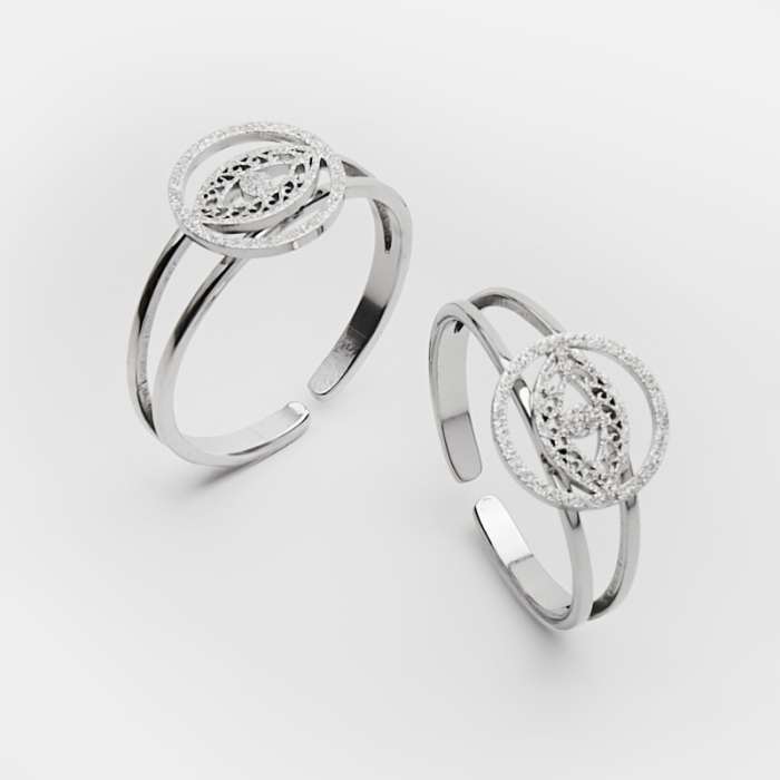 Pierścionek regulowany ze stali chirurgicznej z okiem proroka w kolorze srebrnym 20mm