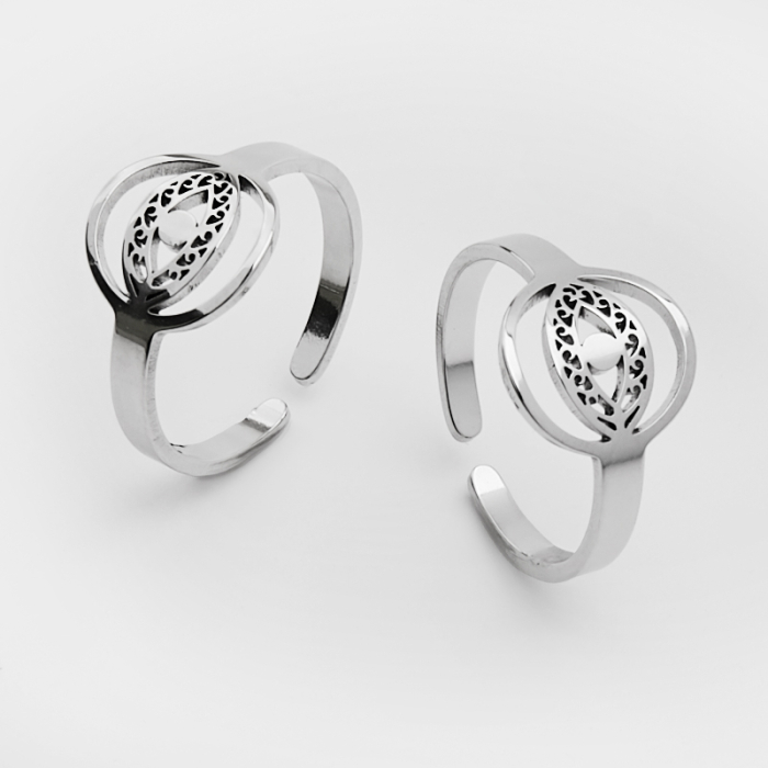 Pierścionek regulowany ze stali chirurgicznej z okiem proroka w kolorze srebrnym 20mm