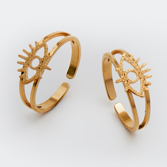 Pierścionek regulowany ze stali chirurgicznej z okiem proroka w kolorze złotym 20mm