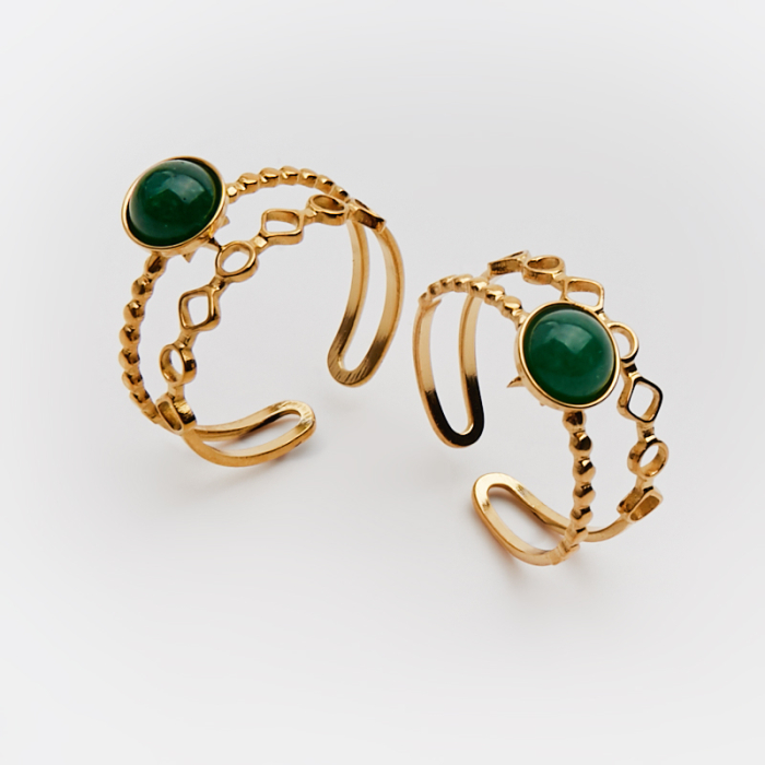 Pierścionek ze stali chirurgicznej z awenturynem w kolorze złotym 18mm