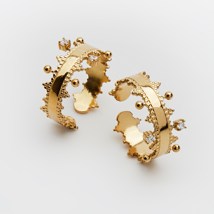Pierścionek ze stali chirurgicznej z cyrkoniami w kolorze złotym 18mm