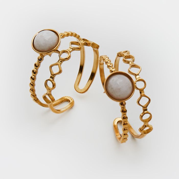 Pierścionek ze stali chirurgicznej z kamieniem księzycowym w kolorze złotym 18mm
