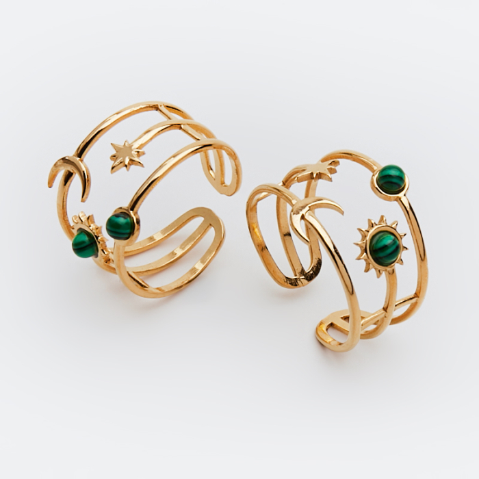 Pierścionek ze stali chirurgicznej z malachitem w kolorze złotym 18mm