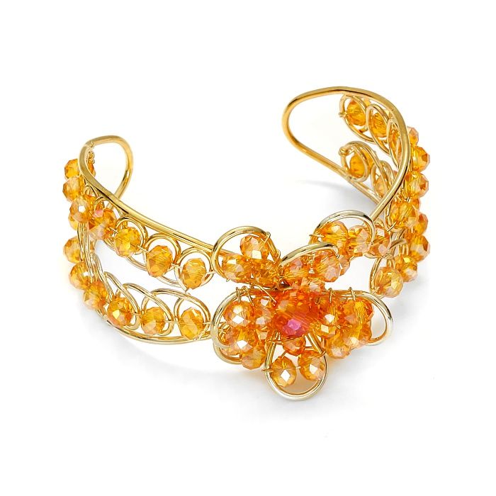 Pomarańczowa bransoletka kryształki oplatane kwiatek "uniwersalna"