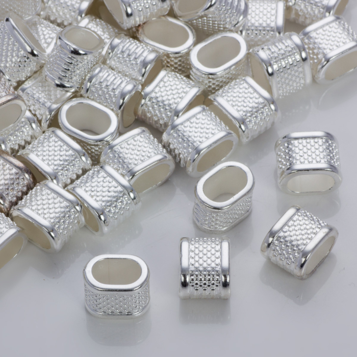 Przekładka w kropeczki do rzemieni w srebrnym kolorze 14,5x10,5mm