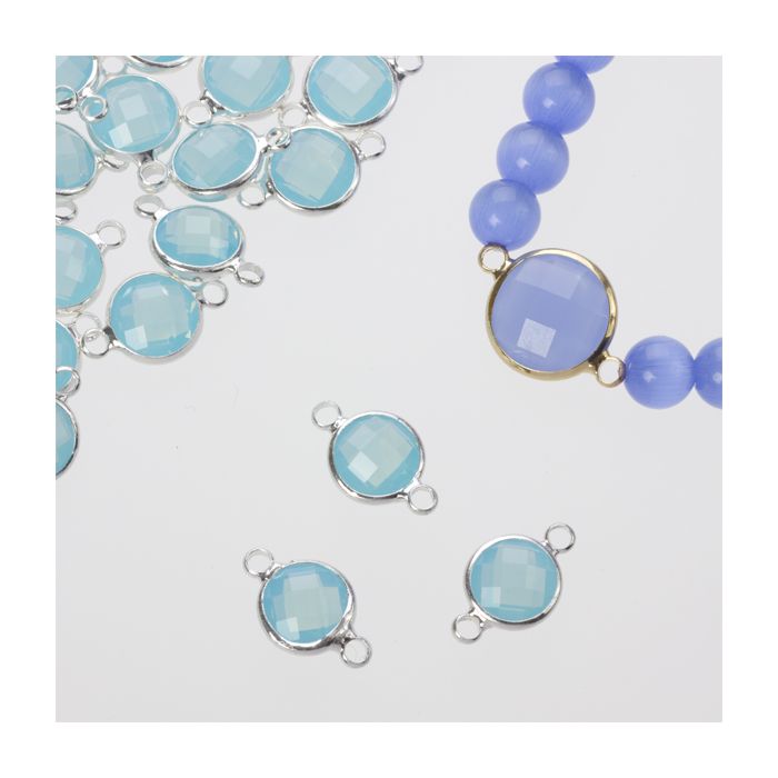 Przekładka w okuciu w srebrnym kolorze z dwoma oczkami opal laguna 10mm