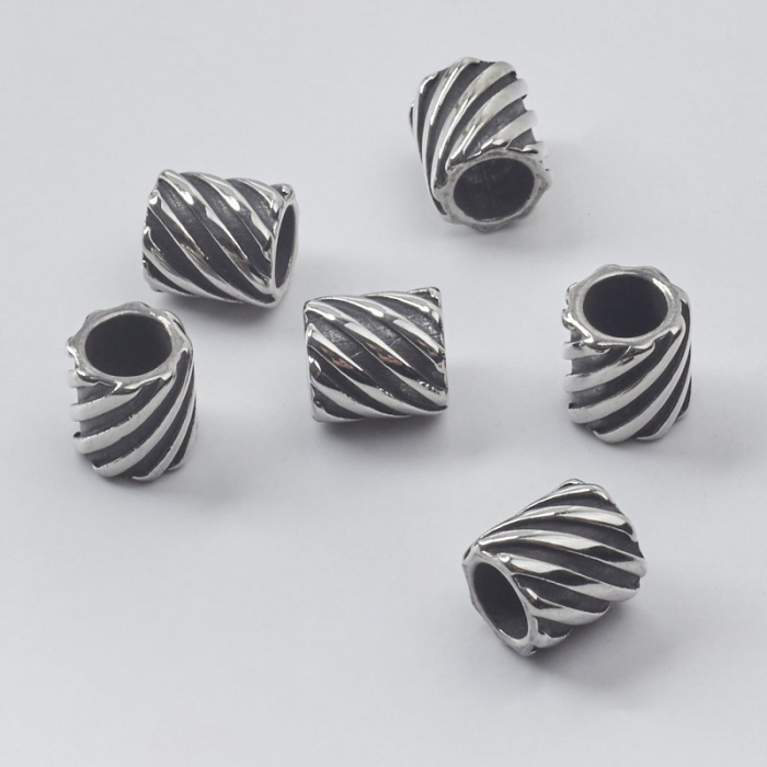 Przekładka walec skręcany ze stali szlachetnej do męskich bransoletek w kolorze srebrnym 9x8,5mmTo funkcjonalny komponent do biżuterii handmade. Stal szlachetna dobrze sprawdza się w biżuterii noszonej na co dzień, ponieważ łączy trwałość z estetycznym wykończeniem.W tym produkcie zastosowano stal szlachetną