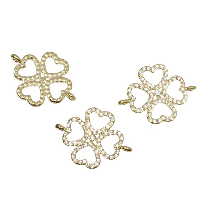 Przekładka z kryształkami koniczyka ażurowa koloru złotego 20x27mm