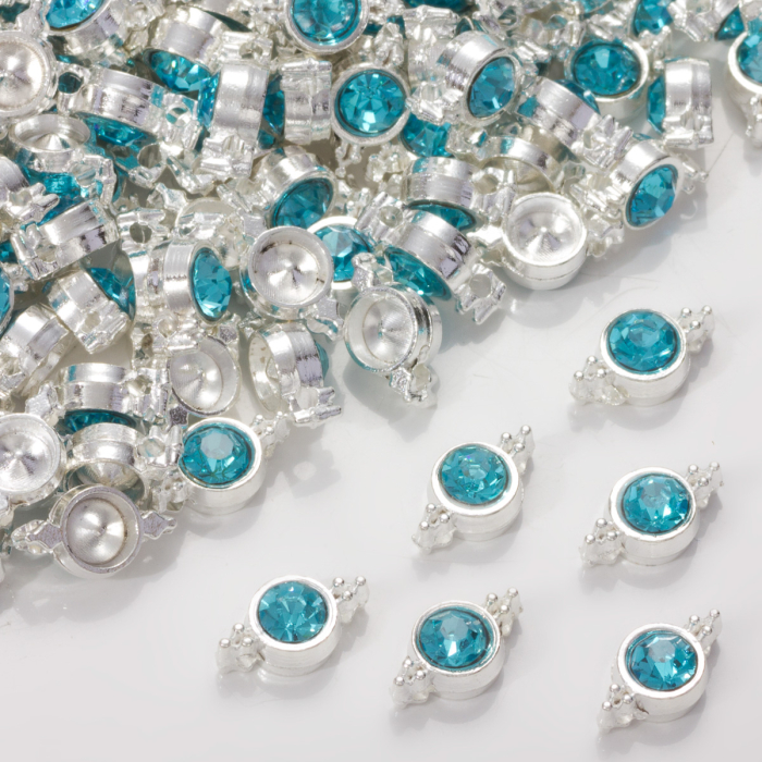 Przekładka z kryształkiem koloru srebrnego aquamarine 10mm
