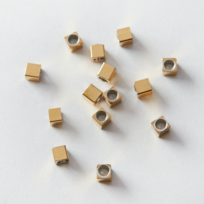 Przekładka ze stali chirurgicznej kostka w kolorze złotym 3mmTo funkcjonalny komponent do biżuterii handmade. Stal chirurgiczna 316L dobrze sprawdza się w biżuterii noszonej na co dzień, ponieważ łączy trwałość z estetycznym wykończeniem.Element ozdobny ze stali chirurgicznej 316L może pełnić funkcję koralika, przekładki lub subtelnego detalu wykończeniowego w biżuterii handmade. Tego typu półfabrykaty pomagają uporządkować kompozycję, oddzielić większe elementy i nadać projektowi bardziej dopracowany wygląd.Rozmiar