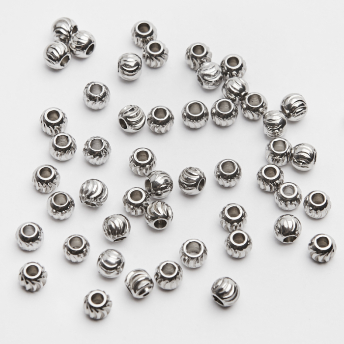 Przekładki kulki nacinane ze stali chirurgicznej w kolorze srebrnym 4mm