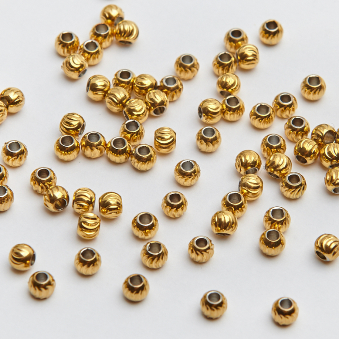Przekładki kulki nacinane ze stali chirurgicznej w kolorze złotym 4mm