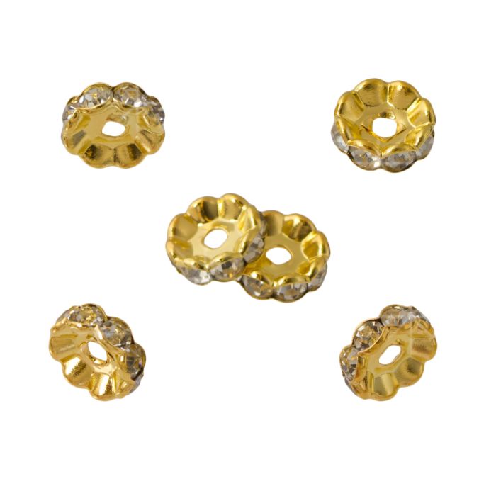 Przekładki rondelki koloru złotego z kryształkami crystal 10mm