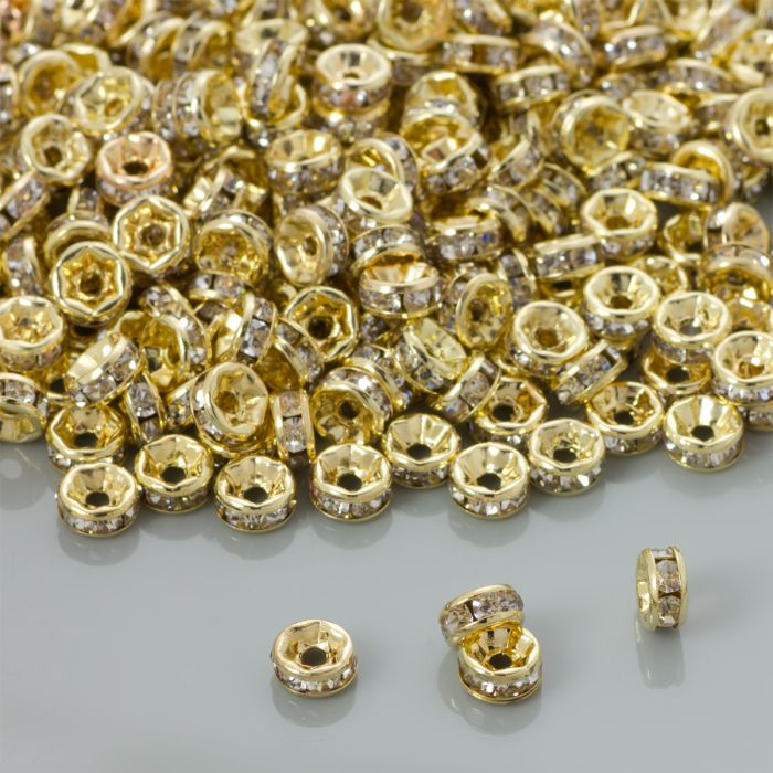Przekładki rondelki z kryształkami crystal real gold color 6mm