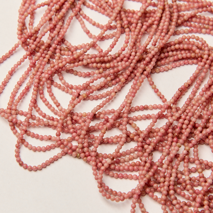 Rodonit wyróżnia się tym, że charakterystyczne różowo-czarne przejścia nadają mu wyrazisty, naturalny wygląd. Rodonit świetnie sprawdza się w autorskich projektach biżuterii o mocniejszym charakterze.