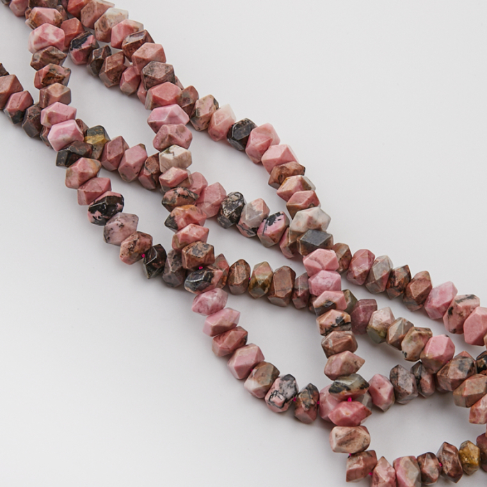 Rodonit poduszka ścianana nieregularna wyróżnia się tym, że charakterystyczne różowo-czarne przejścia nadają mu wyrazisty, naturalny wygląd. Rodonit świetnie sprawdza się w autorskich projektach biżuterii o mocniejszym charakterze.